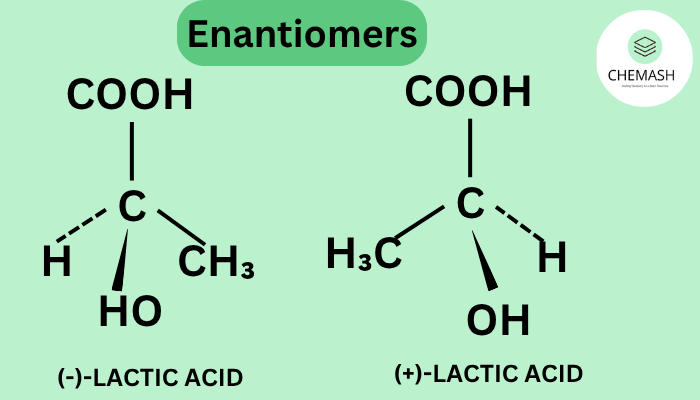 Lactic Acid (CH₃–CH(OH)–COOH) exists as two enantiomers: