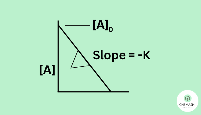 Graph: [A] vs. time → straight line (slope = −k)