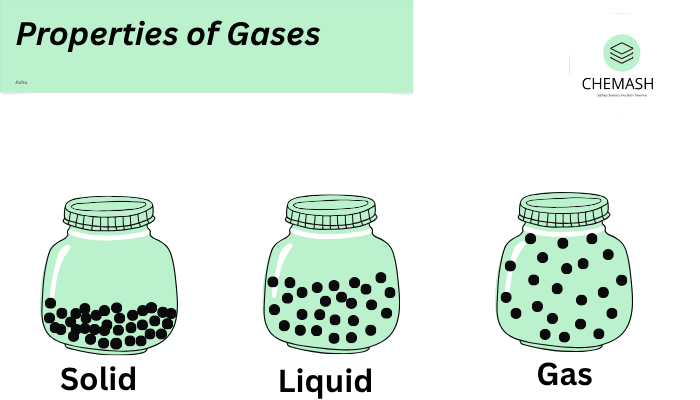 Gases expand to fill the entire volume of their container due to the random motion of particles. Unlike solids and liquids, gases do not have a fixed shape or volume.