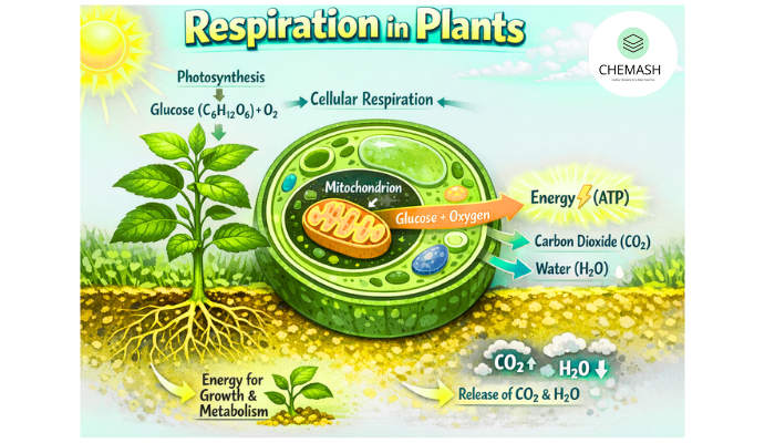 Respiration in plants is the process by which glucose is broken down to release energy in the form of ATP. This chapter is very important for Class 11 Biology, Boards & NEET 2026.